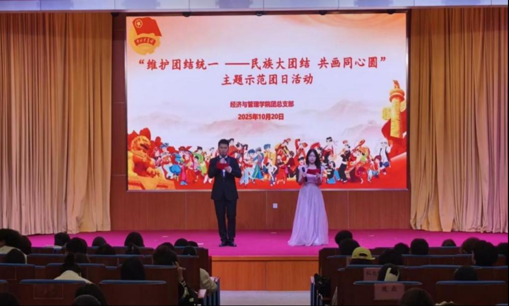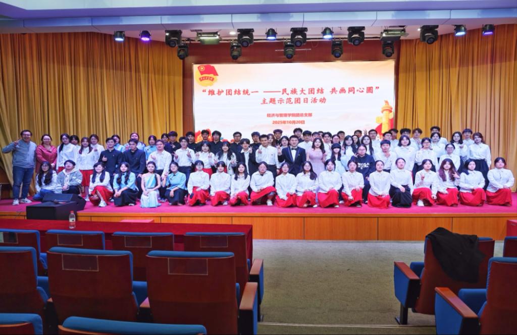 本网消息 10月20日,经济与管理学院团总支部在豁度楼208报告厅,举办“维护团结统一----民族大团结,共画同心圆”主题示范团日活动。学院党总支部副书记芦鹏、团总支部书记汪国超老师参加了此次活动。