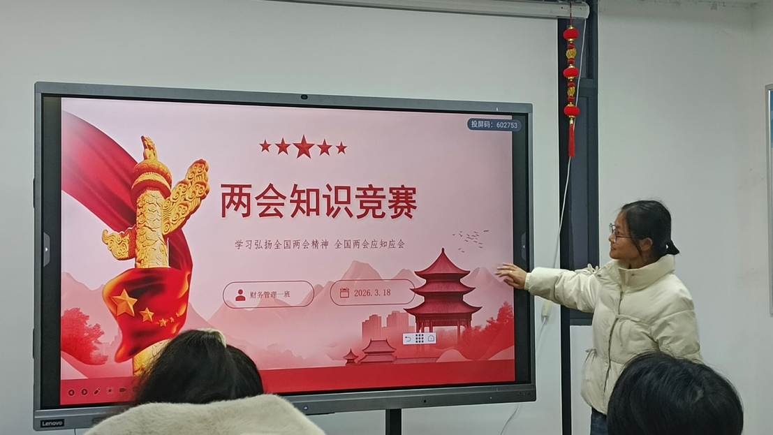 本网消息 为深入学习全国两会精神,引导青年学子将个人成长融入国家发展大局,3月18日18:30至20:30,由辅导员向杜炼老师组织、2025级财务管理一班全体同学参与的“青春视角 时代担当”两会主题知识竞赛在求知社区205教室顺利举行。