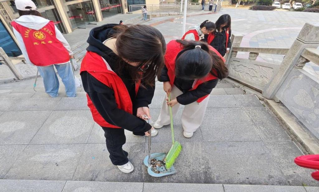 活动开始,负责人将志愿者划分为若干小组,分别负责教学楼周边区域的植树与清洁工作,现场配备铁锹、水桶、垃圾袋等工具。植树环节中,志愿者按树苗大小挖坑,两人协作扶苗,分次填土并压实,最后统一浇水;同时,另一组志愿者对周边环境进行全面清理,捡拾垃圾、清扫死角。同学们认真工作,最终按标准完成全部栽种与清洁任务,有效美化了教学楼周边环境。