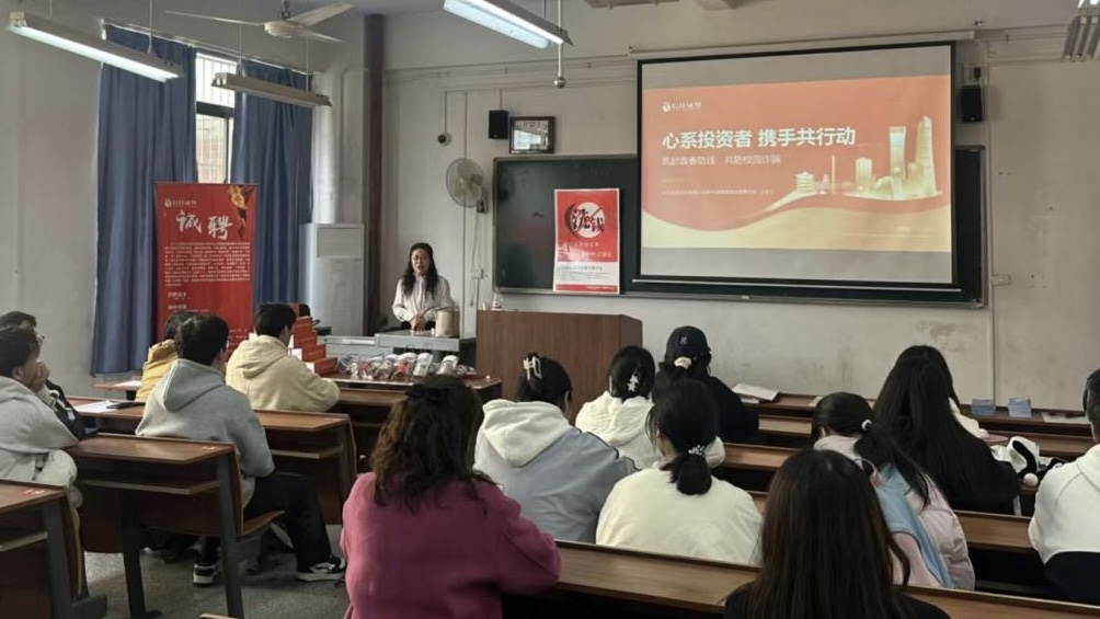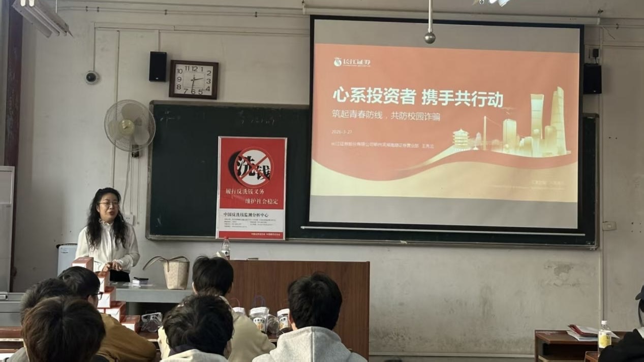 长江证券股份有限公司人力资源部负责人介绍了公司的发展历程和招聘岗位信息,并就金融反诈专题进行宣讲。在随后的互动交流环节,现场气氛热烈,同学们围绕职业发展路径、岗位能力要求等问题踊跃提问,招聘团队逐一进行了解答。部分毕业生现场投递了简历,并参加了初步面试。
