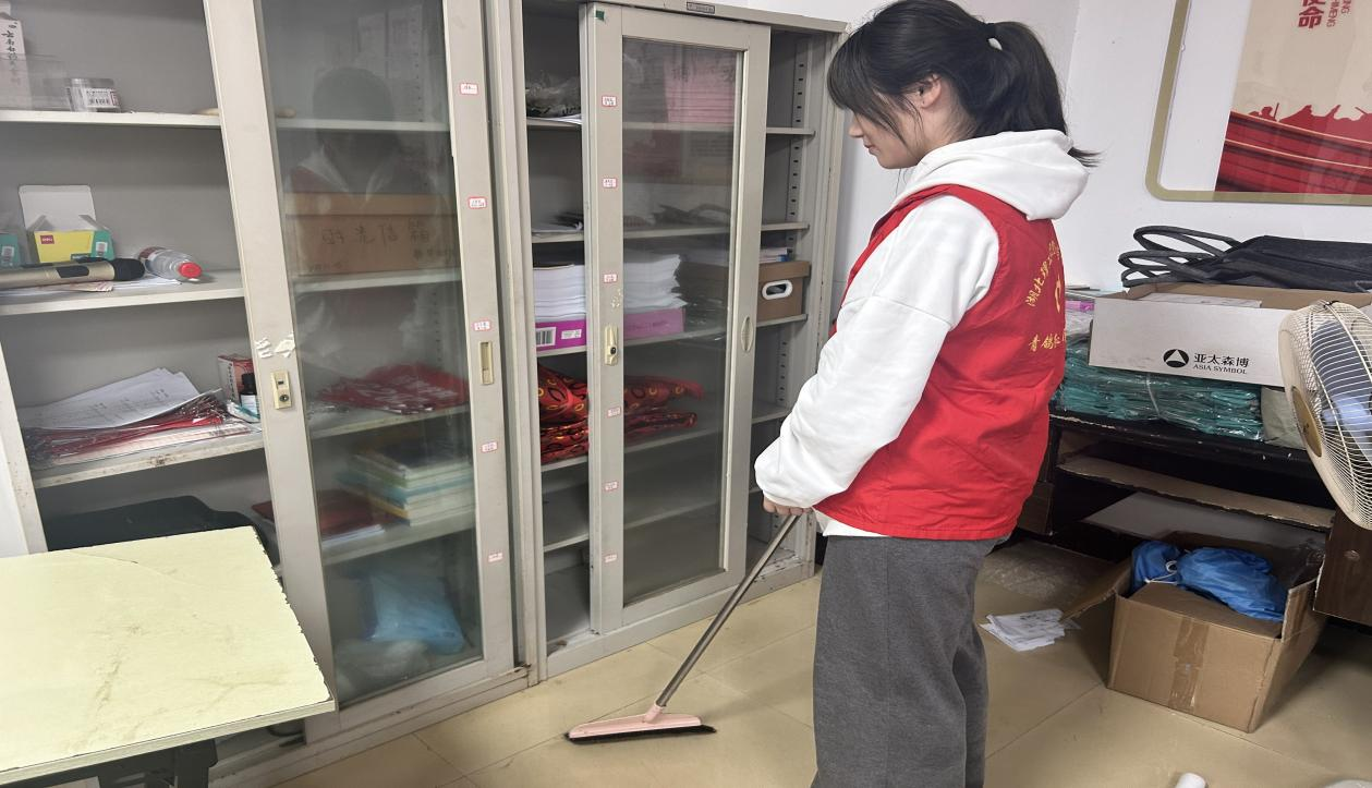 活动前期,组织者提前安排人员、准备物资,配齐了扫帚、垃圾袋、手套等工具,明确分工细则与安全规范,并安排专人记录。当日14点,全体志愿者准时集合,负责人清点人数、重申纪律后分发工具。各小组迅速前往责任区域,清扫地面垃圾、捡拾角落杂物、细致清理卫生死角,负责人员在现场及时解决问题,保障活动顺利进行。活动尾声,大家统一归还物资、集体合影留念,整场志愿服务活动秩序井然。