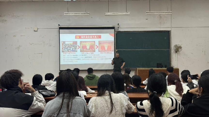 本网消息 经济与管理学院于10月14日18点30分在X3-304开展了第39期党课第三期培训,本次党课以“党的二十届三中全会精神和全国两会精神”为主题,由江齐明老师主讲,学院全体入党积极分子参加学习。